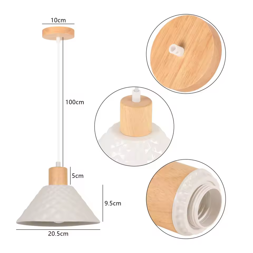 Aporta un toque moderno y cálido a tu hogar con esta lámpara colgante de cerámica y madera. La pantalla de cerámica de 20,5 cm difunde una luz suave y uniforme, mientras que el accesorio de madera natural añade un toque sofisticado y escandinavo.