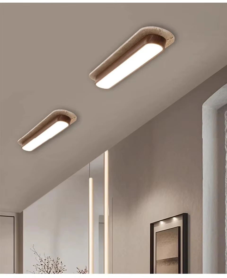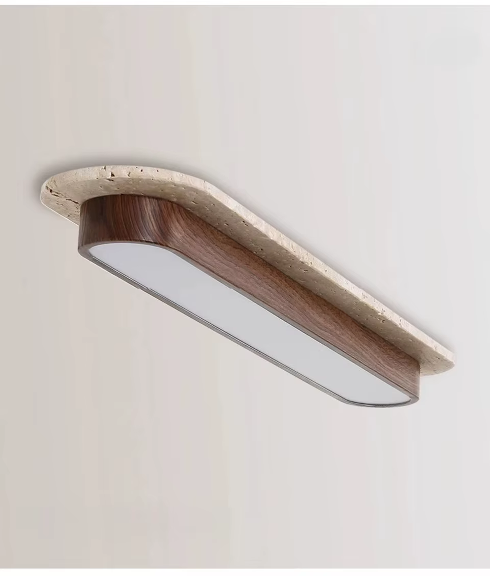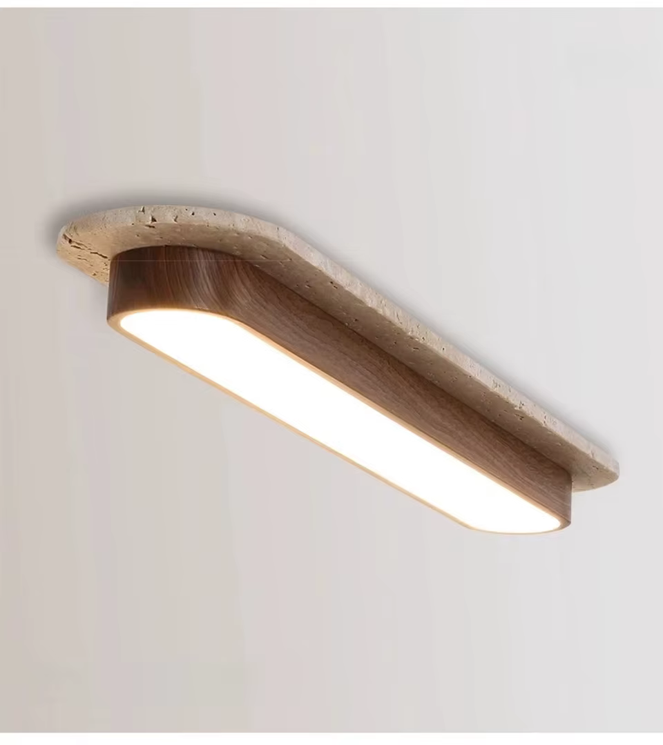 Lámpara de techo larga de travertino y madera 10×50 cm