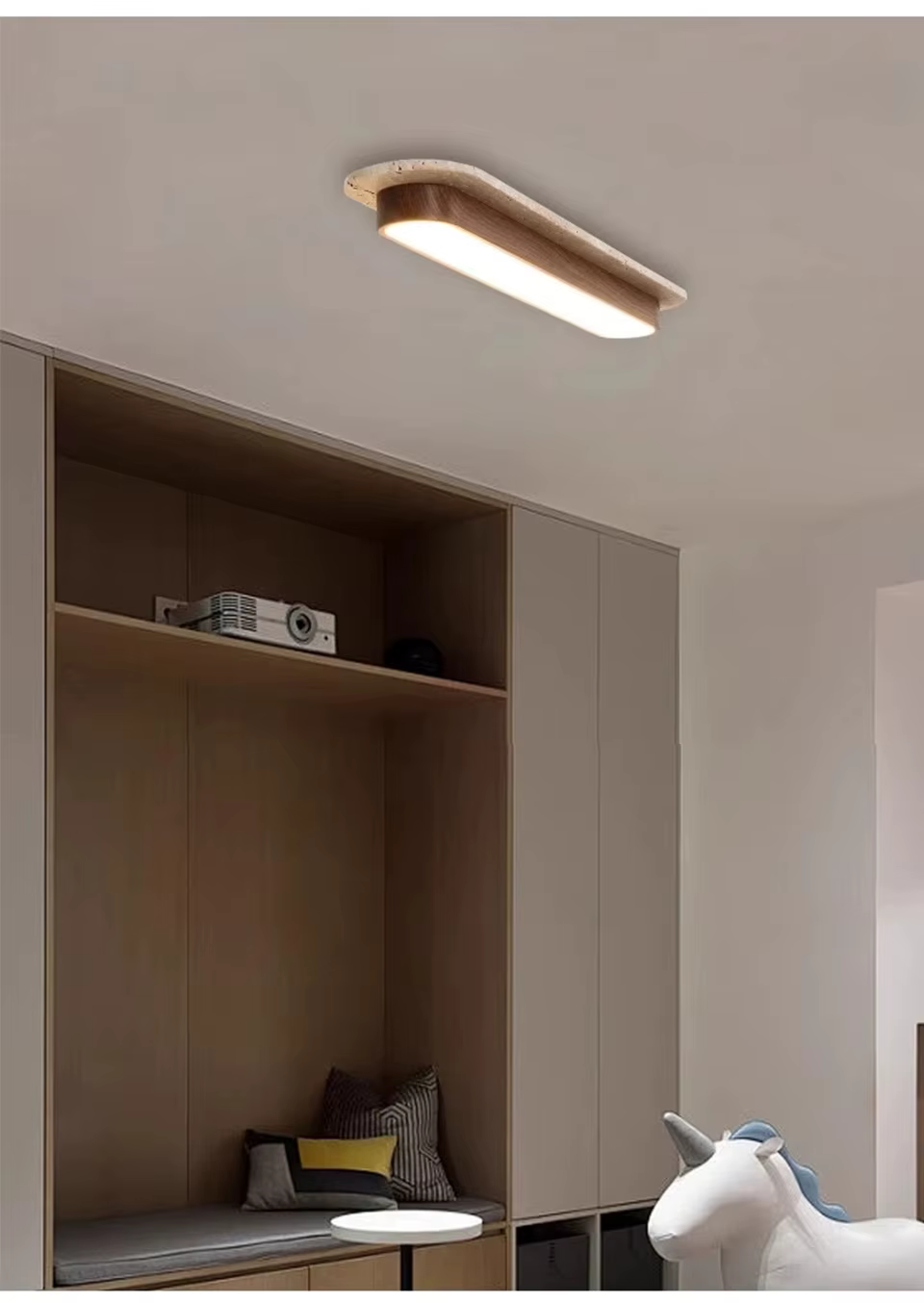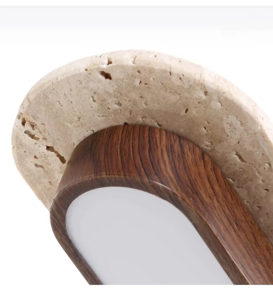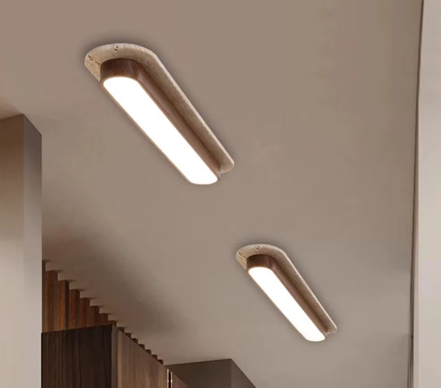 Lámpara de techo larga de travertino y madera 10×50 cm