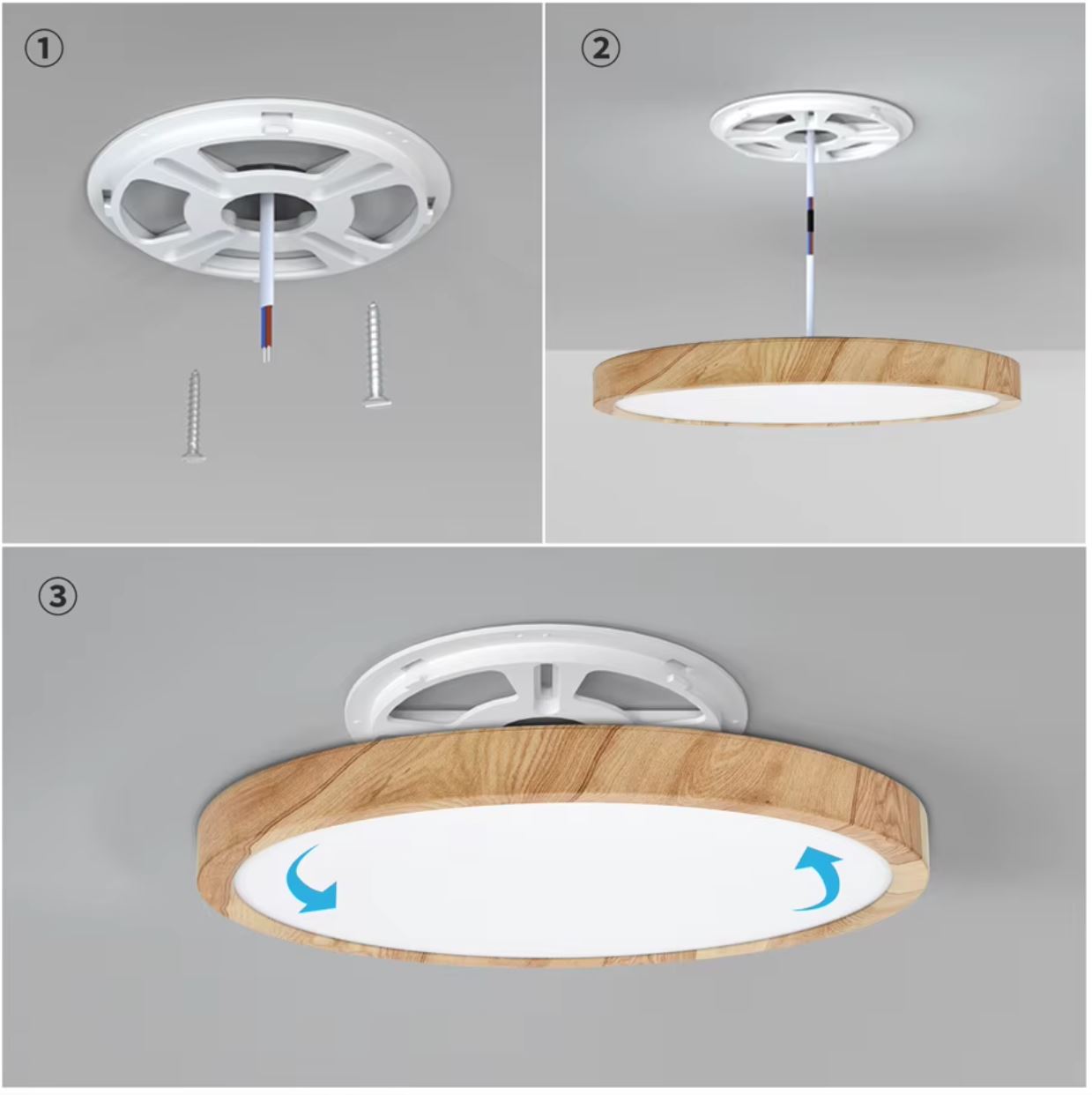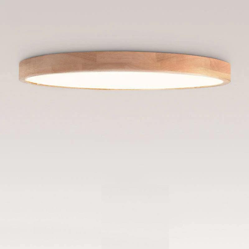 Lámpara de techo redonda de madera con LED muy fino (blanco frío) D30cm